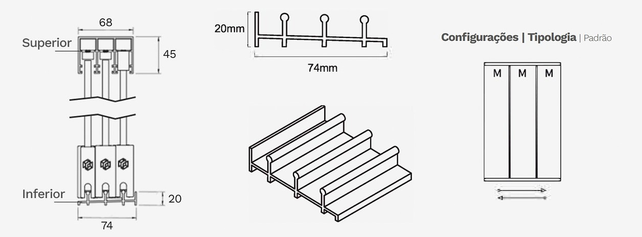 Trilhos: O sistema conta com trilhos nas versões de 2 e 3 vias, oferecendo maior flexibilidade nas configurações.