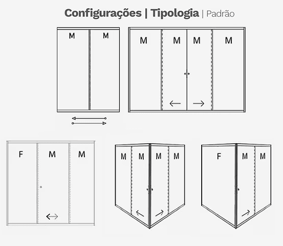 Duas folhas móveis + duas fixas